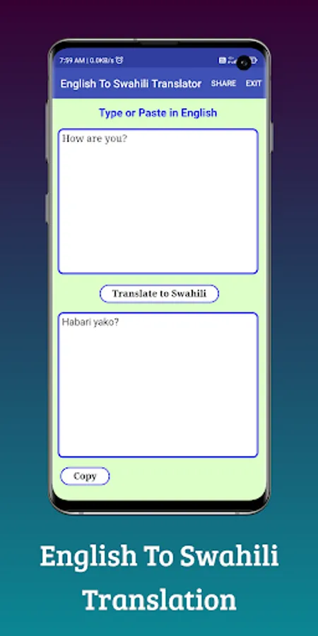 This App will be very useful to people wanted to learn Ksawahili/Swahili or English from their native language also useful to travelers, students and everyone who raise their level of language.