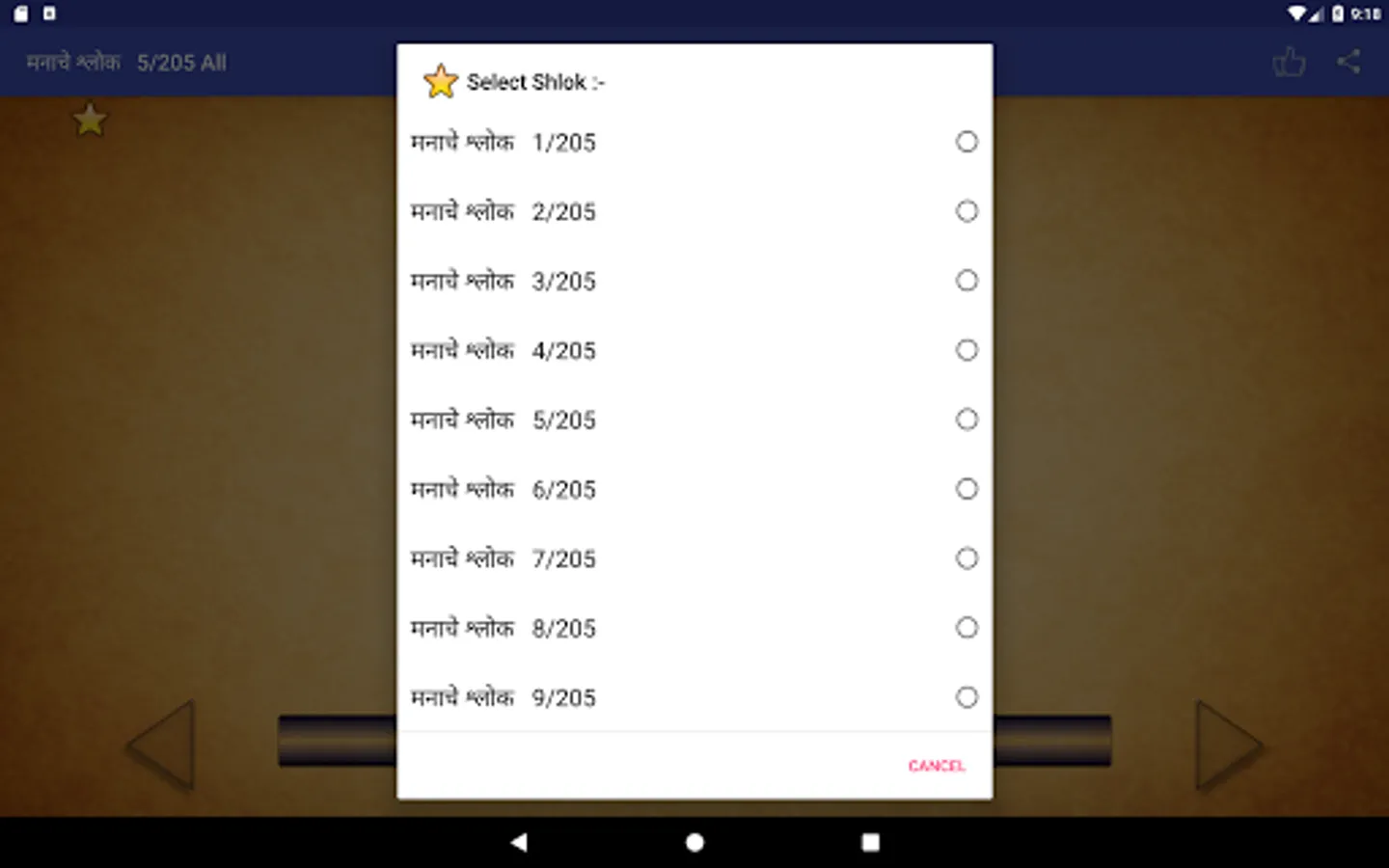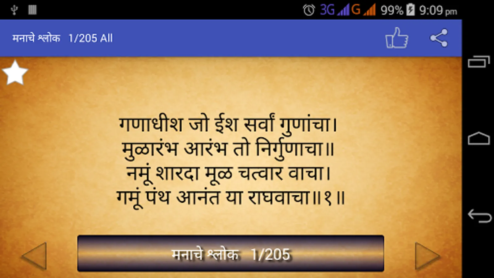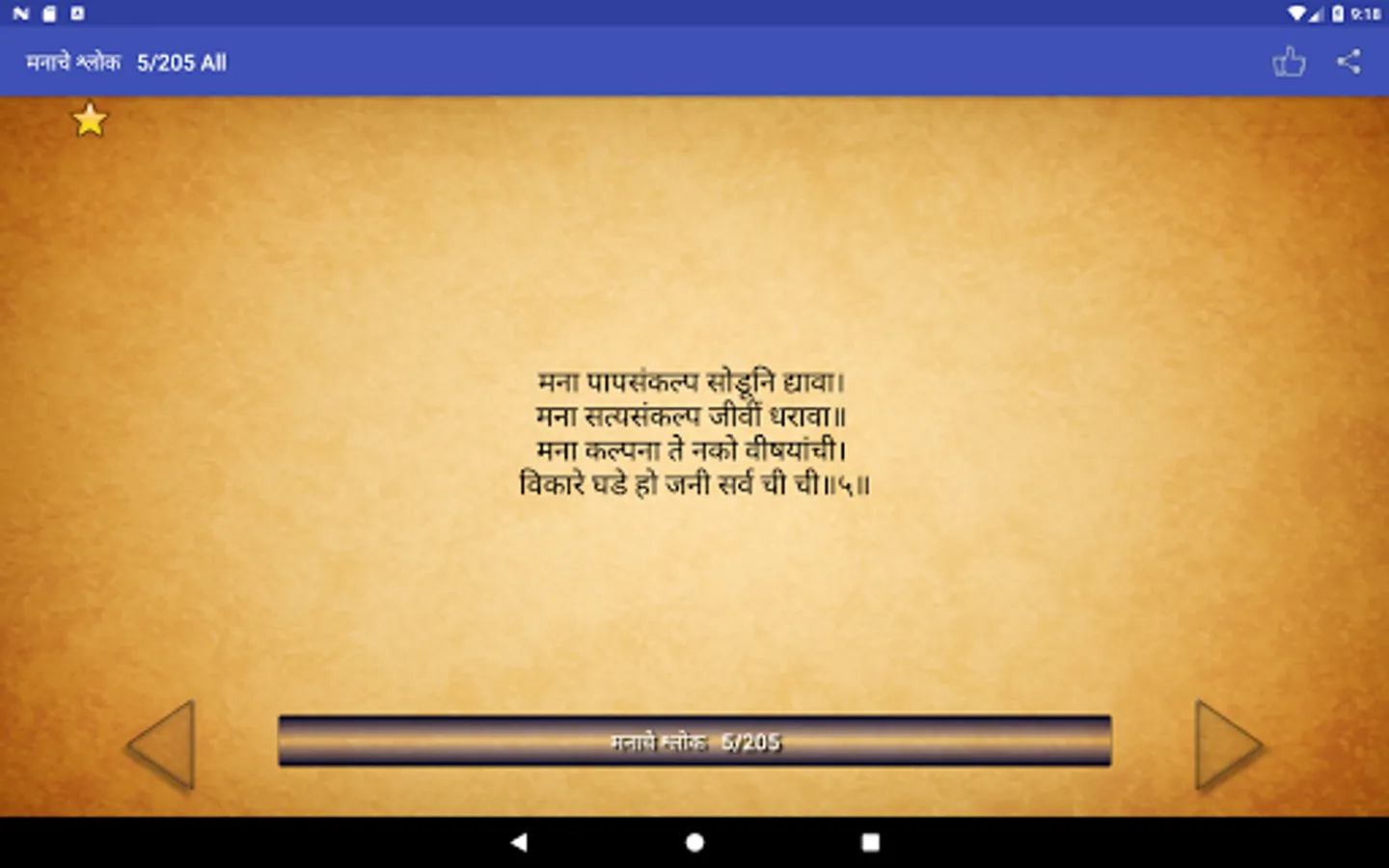 So Application contains 205 Abhangas called "ManacheShlok" its also know as Shree Manache Shlok (मनाचे श्लोक)