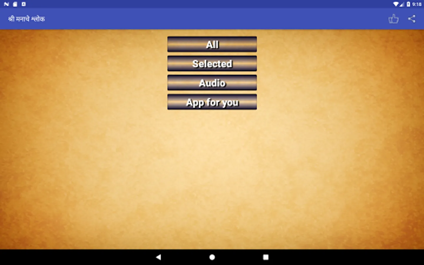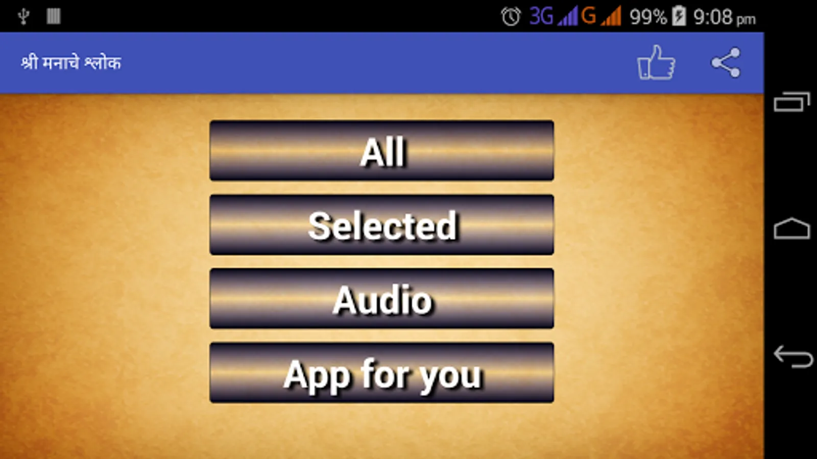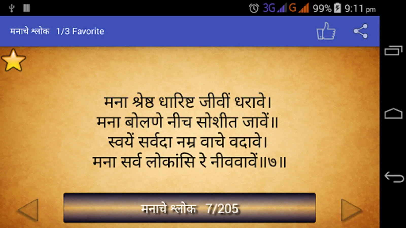 So Application contains 205 Abhangas called "ManacheShlok" its also know as Shree Manache Shlok (मनाचे श्लोक)