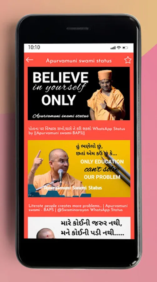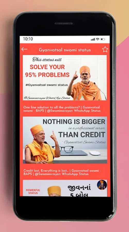 It includes Hundreds of status videos in it with much different playlists named swaminarayan status, gyanvatsal swami status, apurvamuni swami status, kashtabhanjan dev status, lord mahadev status and much more.