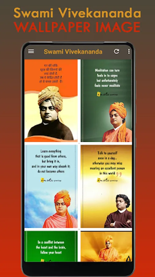 Get the Swami Vivekananda Wallpapers App to personalize your mobile screen with different HD Images. Swami Vivekananda App where you can changes your phone background with beautiful Pictures of Vivekananda. Swami Vivekananda Jivan Charitra is very Inspirable to thousands of people in the World. Swami Vivekananda was an Indian Hindu monk, a chief disciple of the 19th century Indian mystic Ramakrishna.