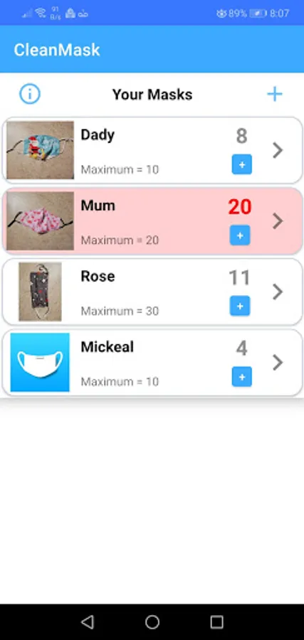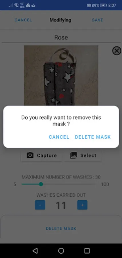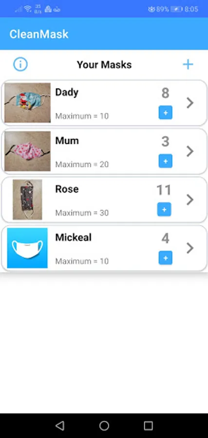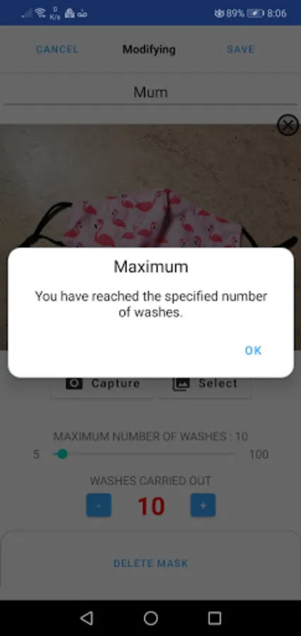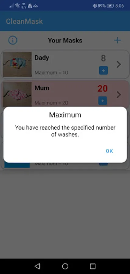 CleanMask helps you track the number of washes of your cloth masks, in order not to exceed the maximum number provided by the manufacturer.