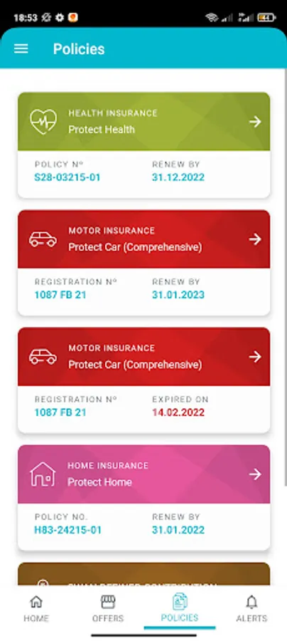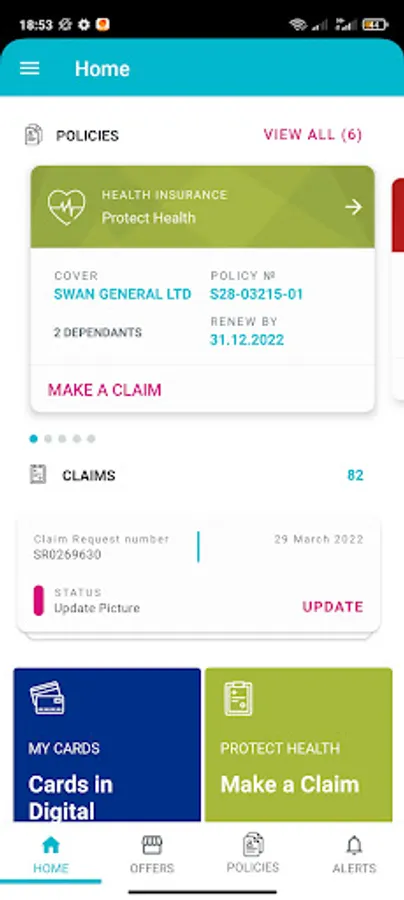 · View and monitor their Health insurance, Home insurance, Car insurance and Life policies.