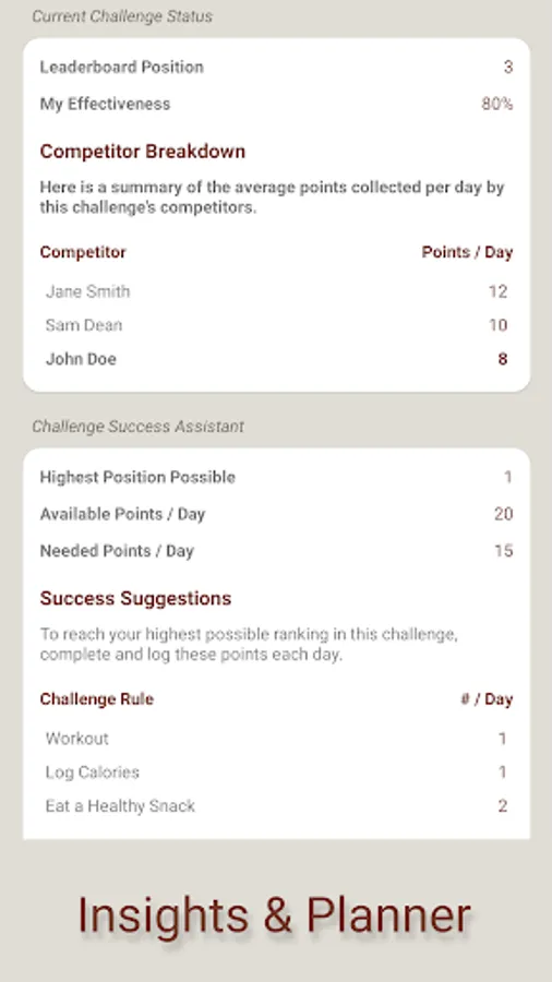 If you want to up your challenge game, consider subscribing to Pointagon Pro for $1.99 USD / month. With Pro, you gain access to Challenge Insights and a Success Planner that crafts specific plans for you based on your challenge rules. See your effectiveness over time and learn where you can improve!