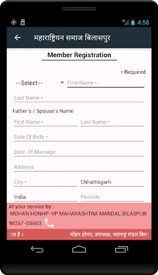 This app is for Maharastriyan Samaj of Bilaspur. This app concept is by Shri Mohan Honap, which intends providing a platform to people connecting and knowing fellow members.