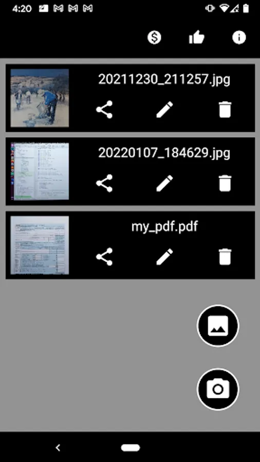 - all your scanned documents are also stored in a handy list, allowing you to share, rename or delete them.