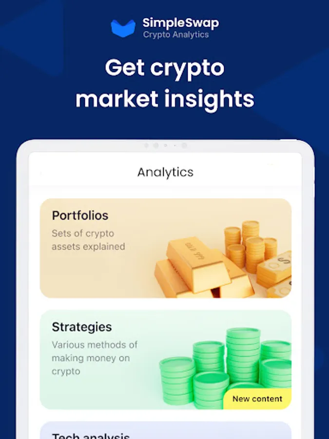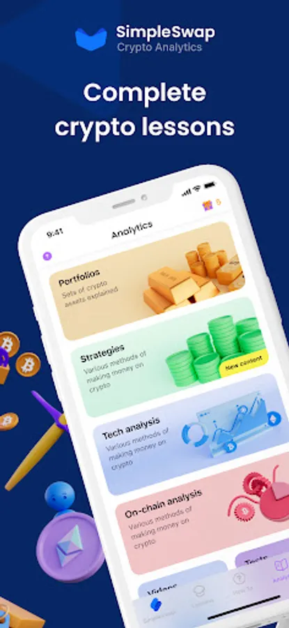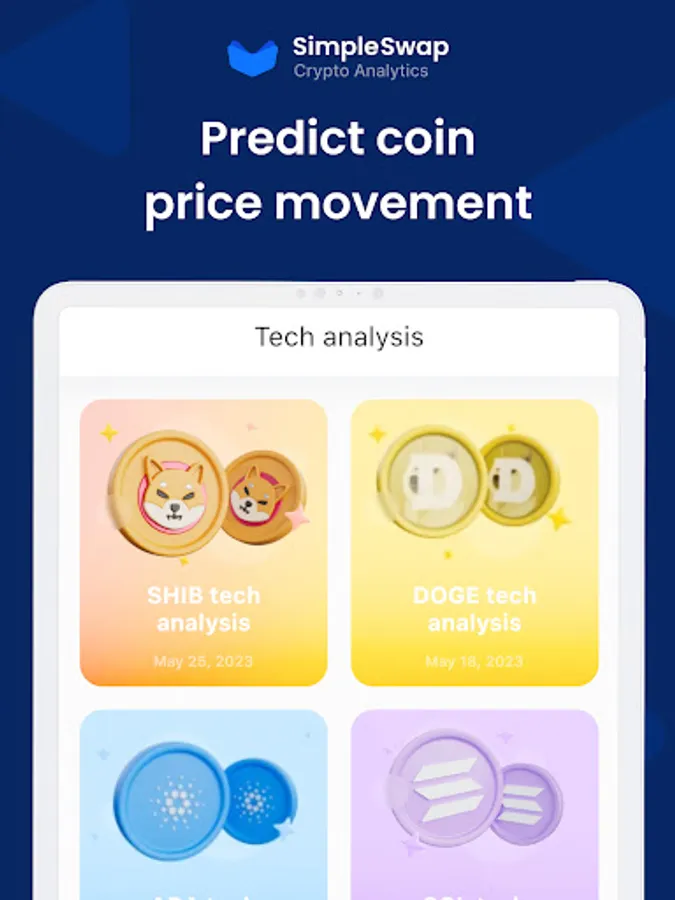 Download SimpleSwap, the ultimate crypto analytics app, and embark on a journey of crypto learning and trading. Explore Ethereum, Bitcoin, and other cryptocurrencies. Learn, trade, and grow your knowledge within the dynamic crypto market.