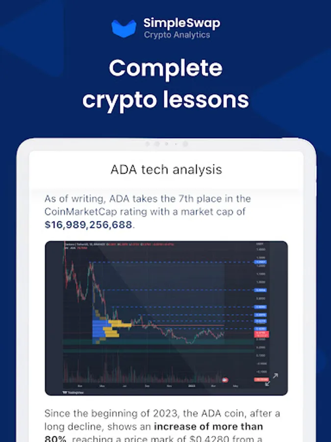 With the SimpleSwap crypto education app on hand, you will always have access to fresh market analysis for crypto investment decision-making. We made it to expand people's knowledge of the crypto ecosystem and DeFi platforms. It is essential for staying updated on the crypto news and trading crypto efficiently.