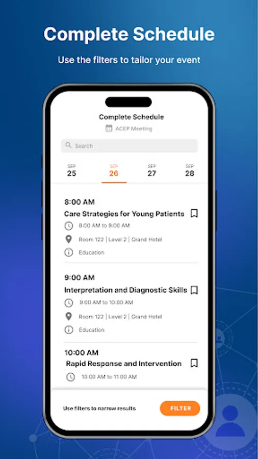 This on-the-go companion to ACEP's live event allows you to access complete and up-to-date course schedules; see maps; search faculty bios; access course presentations, and more! Simply log in with the credentials you used to register, then view, update or change your personal schedule in the app. Reignite your passion for the specialty with ACEP's emergency medicine events!