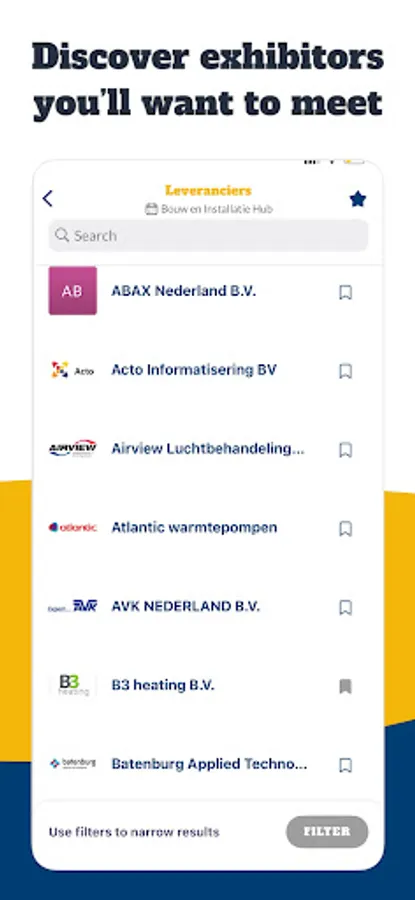 Installation and construction are increasingly moving towards each other. With the Bouw en Installatie Hub we bring news and product news from the two branches every day. With this app you can prepare your exhibition visit and get in touch with exhibitors, partners, speakers and visitors. You will also find your ticket here.