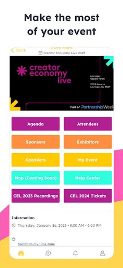 The Official Event App for Creator Economy Live, happening LIVE January 26th, 2023 at Caesars Forum in Las Vegas, NV!