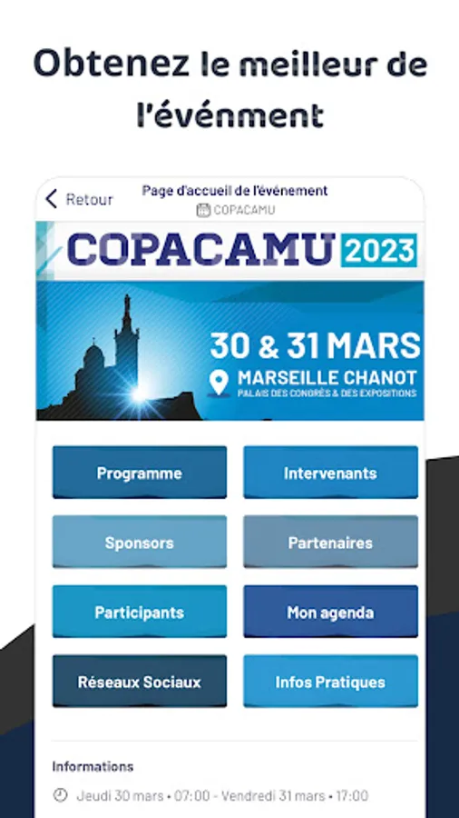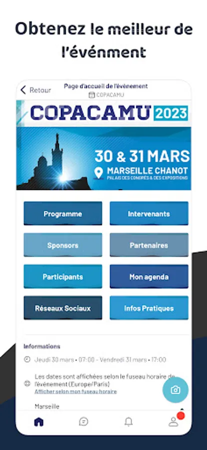 The COPACAMU application makes it possible to gather all the information on the congress but also to interact with the speakers and the participants.