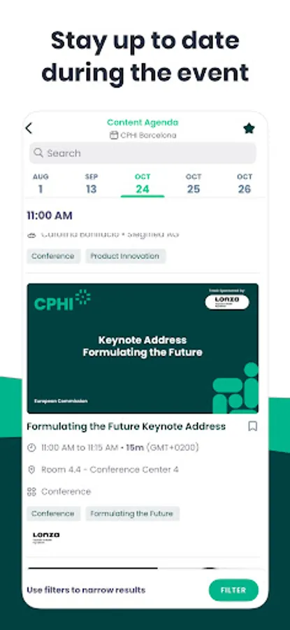 At the heart of Pharma - Discover your online event with our interactive mobile app. The CPHI Event Planner puts the latest information about the event in the palm of your hand. This app allows for excellent navigation around the event connecting you with exhibitors and attendees. It provides you with practical information about the conference programme, the speakers and the venue so that you can make the most out of your event experience with us.
