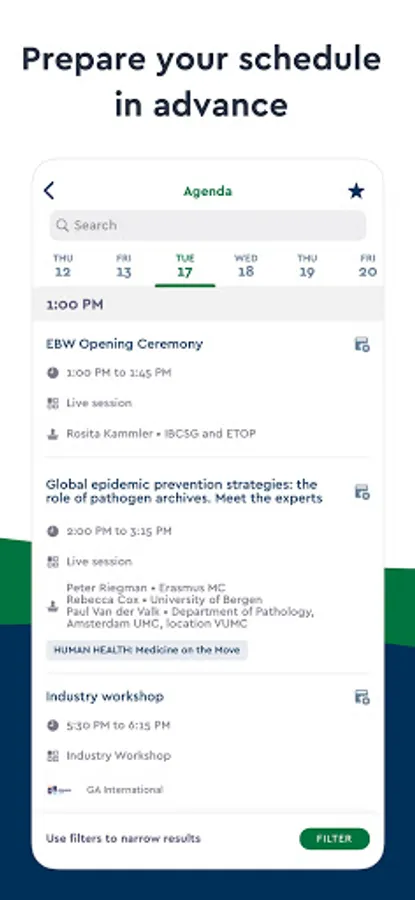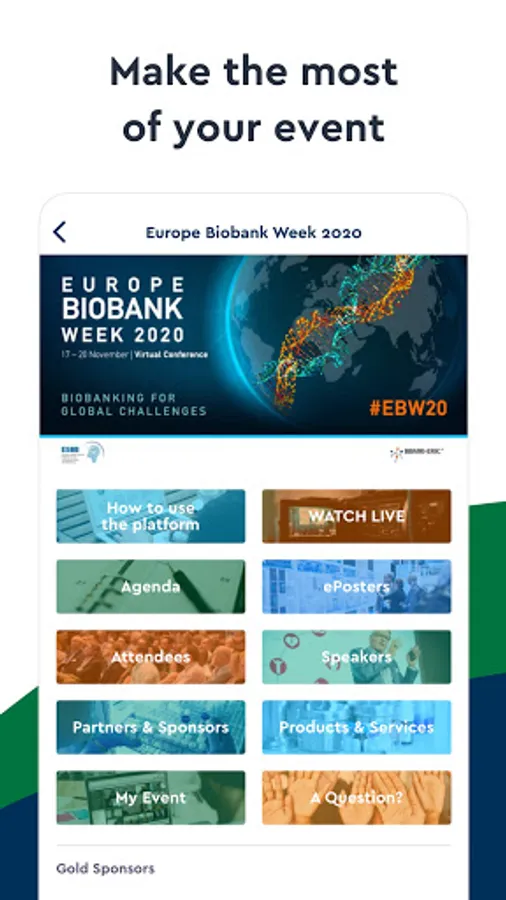Share your knowledge, learn from the most eminent experts and network around the current global challenges and the ways biobanks address them with EBW2020 Virtual Conference App! Use our App to organize your conference schedule, make quality connections, plan in-person meetings and make the most out of the conference!