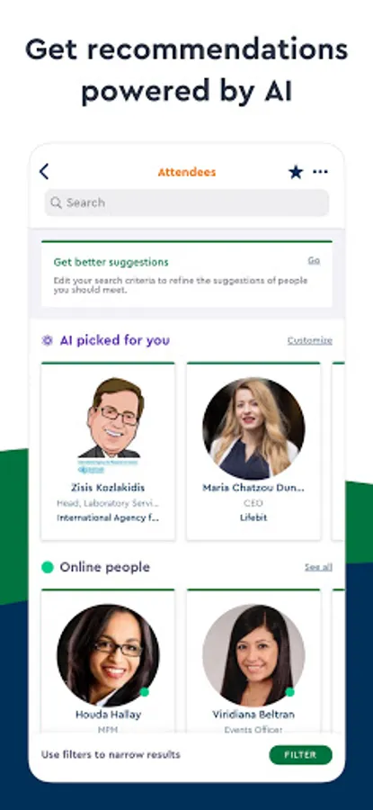 Based on your professional needs, our AI powered App suggests participants with common interests. Start reviewing your matches, initiate conversations and plan to meet virtually using a video call function.