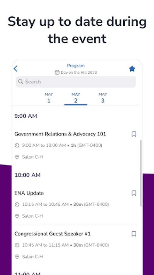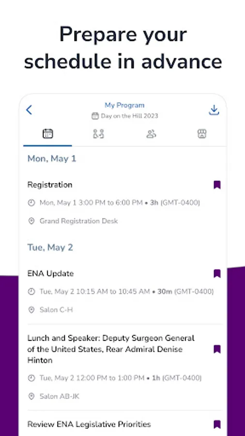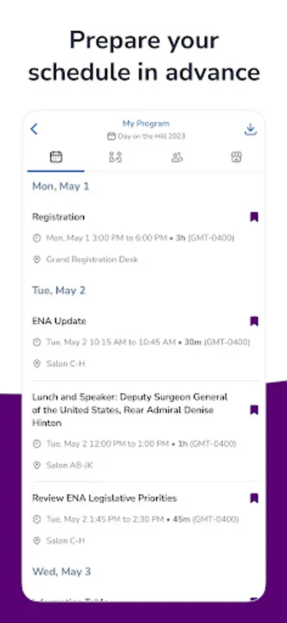 The ENA Events app is the Emergency Nurses Association's primary space for event attendees to review schedules, interact with peers, stay up to date on event activities and connect with the association.