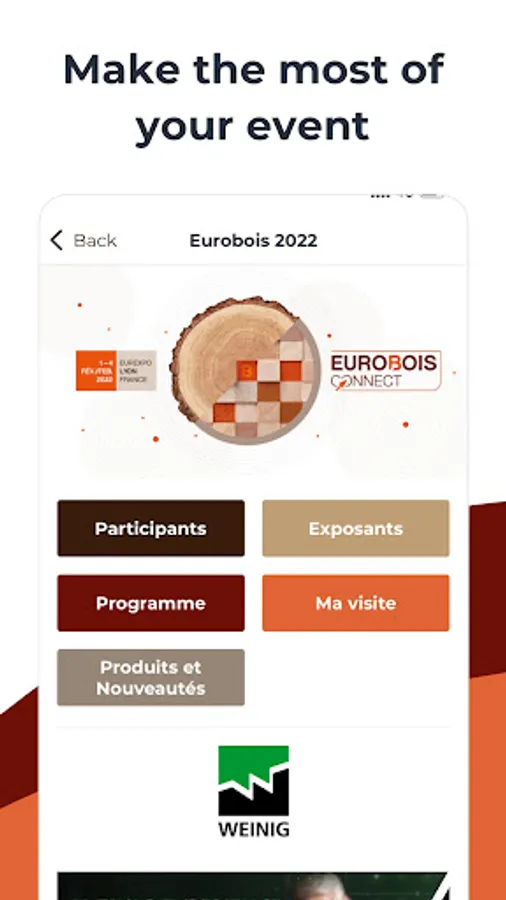 Discover Eurobois Connect: a web platform and a mobile application accessible to the entire trade show community: exhibitors, visitors and partners.