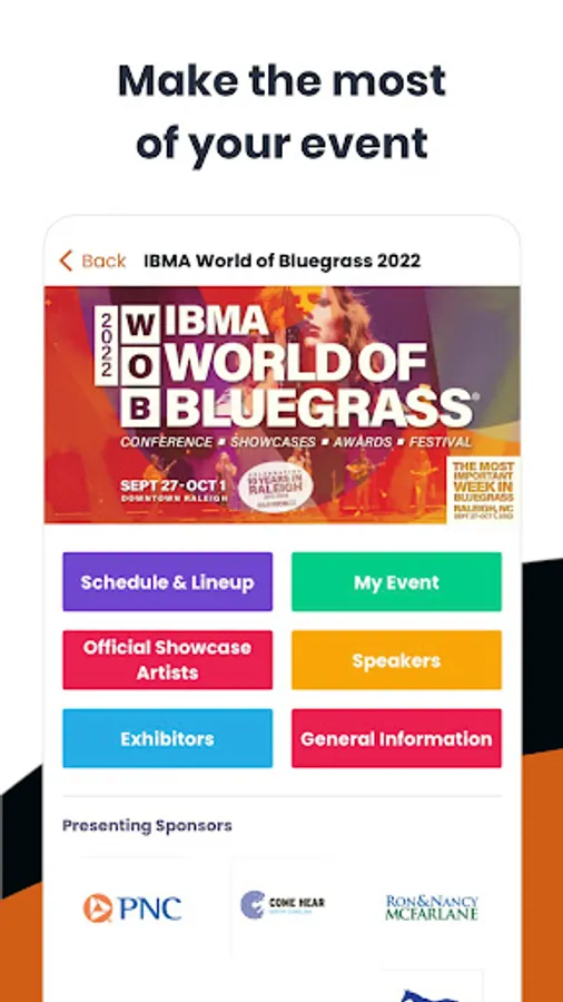 The official app for IBMA World of Bluegrass 2022 features the full lineup and schedule, maps, FAQs, and more to help you plan your perfect week of bluegrass music!