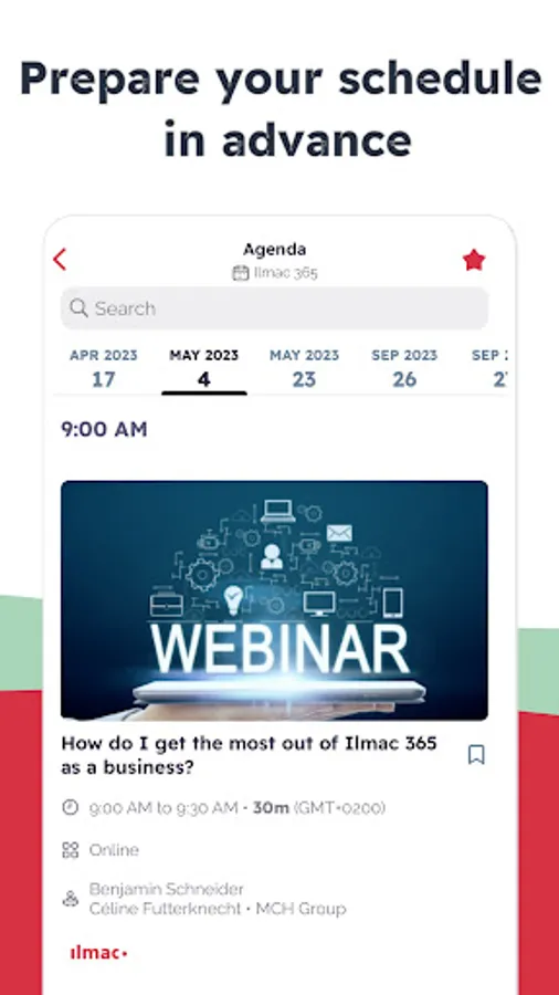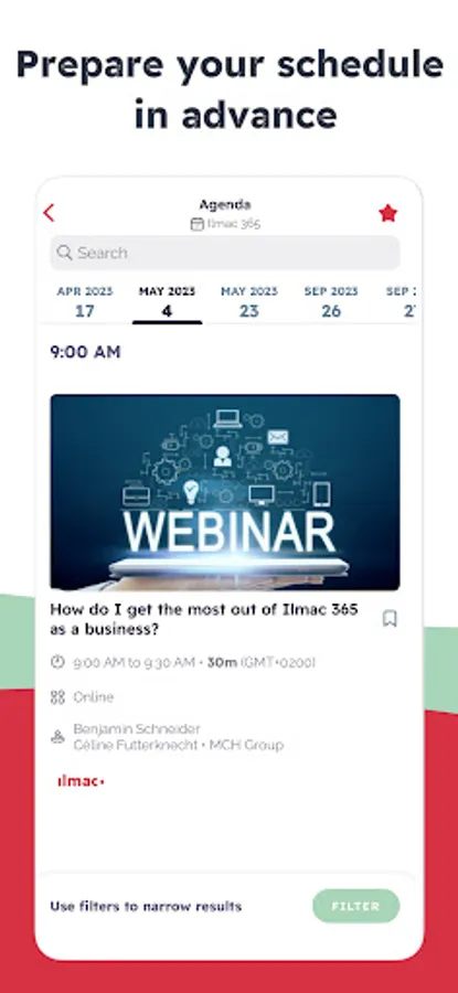 – Planning your trade fair visit: mark important slots in ILMAC Forum and Speakers Corner to receive timely push notifications as a reminder