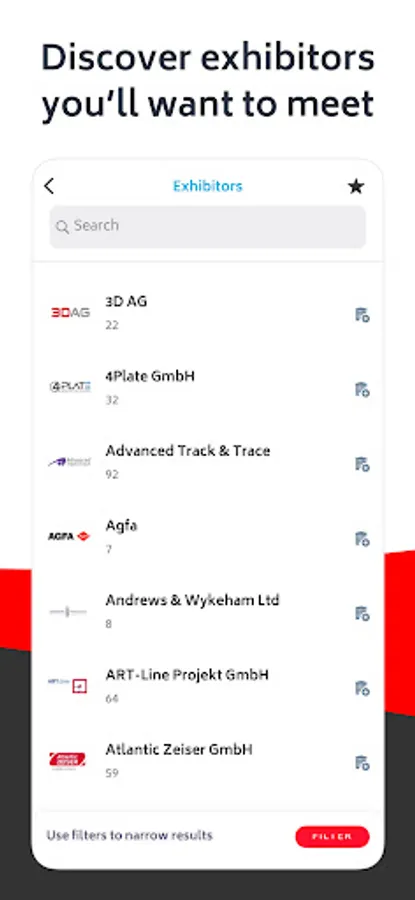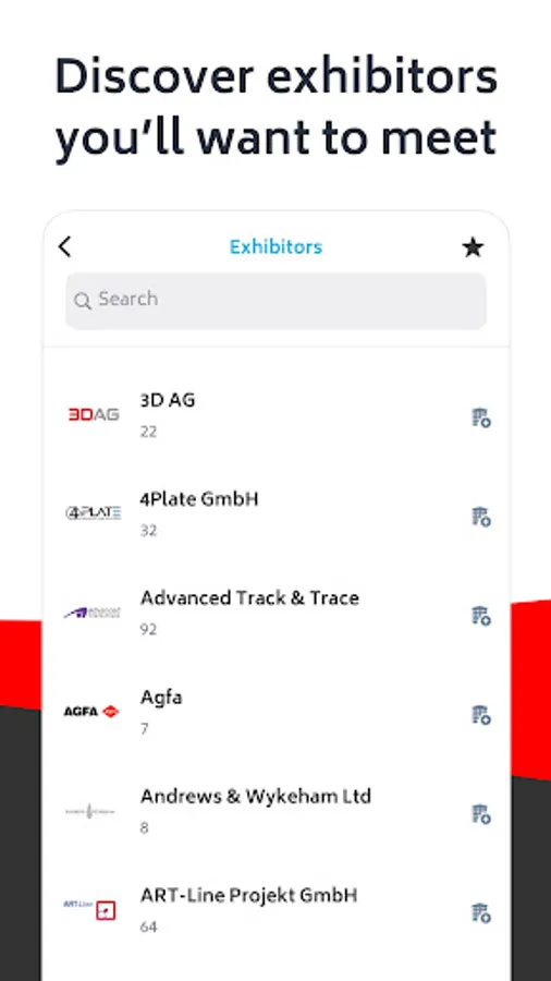 Bookmark sessions you want to attend, exhibitors whose products and solutions you want to check, and people you want to book meetings with. To make sure you keep track of all of that, the app will send you reminders and updates. And all your contact details, notes and follow-up actions can be saved and exported in one simple click.