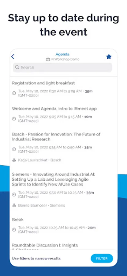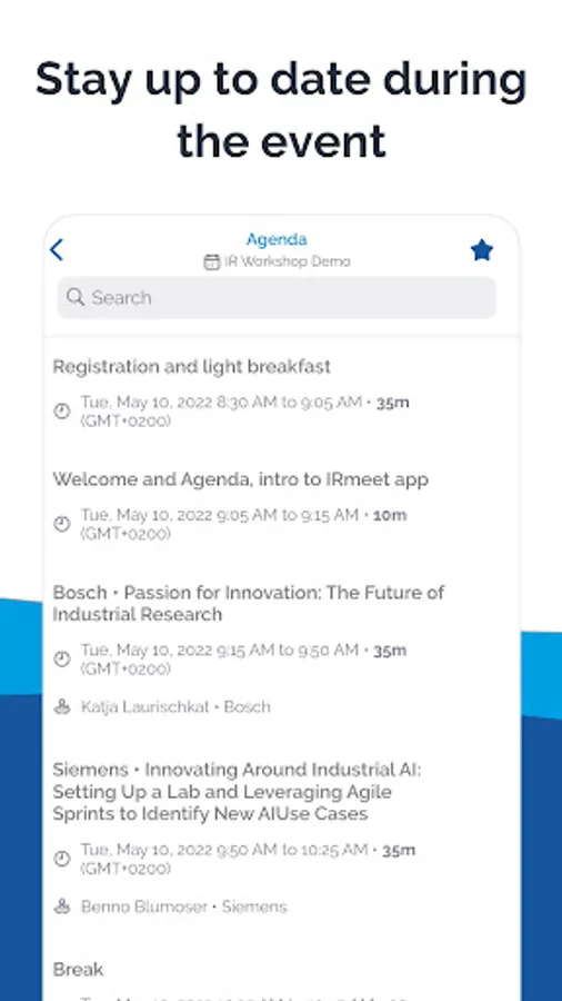 IRmeet has been designed to maximize your network opportunities at our events, interact with attendees and speakers, and share insights in discussions, surveys, and polls. Before, during and after each of our events.