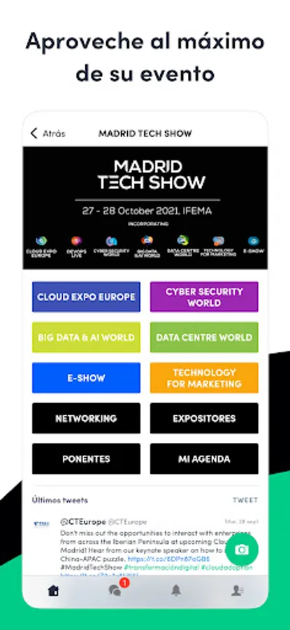 Madrid Tech Show, the professional meeting of the IT sector is made up of: Cloud Expo Europe, Cyberstecurity World, Big Data & AI World, Data Center World, Technology for Marketing and E-SHOW. With the event app you can access the conference program. Connect with the most prominent exhibiting companies in the sector and access exclusive content. Organize your custom agenda, select the conferences you want to attend. Meet the leading companies in the sector and the best providers in technology services. Boost your networking and establish new business relationships.
