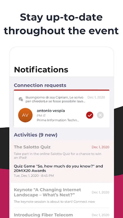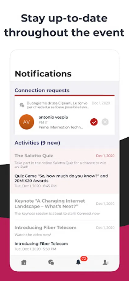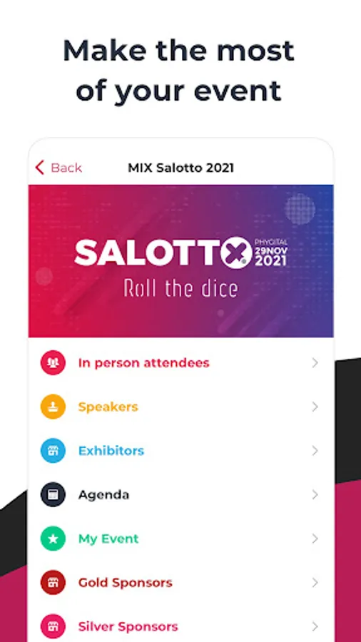 Use the app to check the agenda, add new contacts, follow the sessions, schedule in person and online meetings.