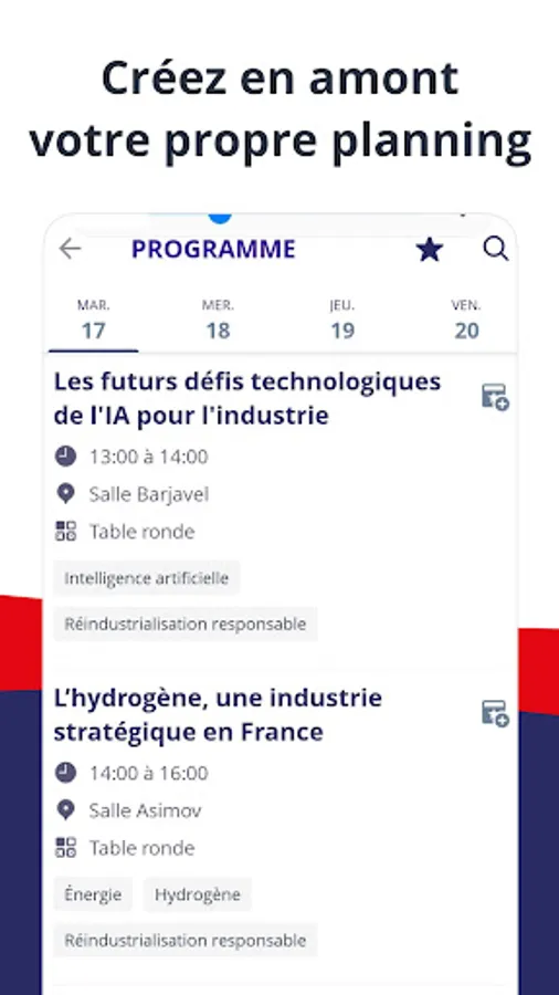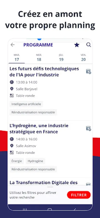 Badge reader, interactive map, replays, networking with exhibitors and visitors, appointment scheduling, planning of conferences and events... myGI is your practical and essential tool for your visit on computer or mobile!