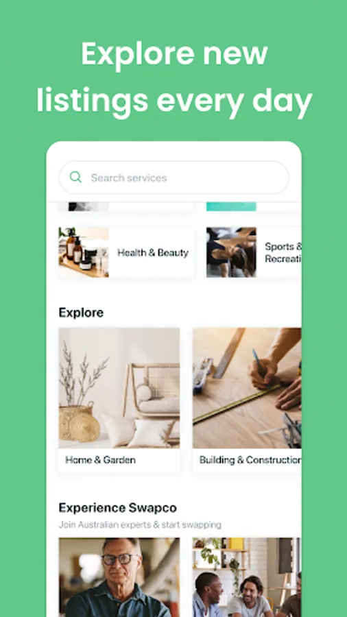 Search and swap your products or services Australia-wide. Find everything from gardening to home maintenance, building to fitness, furniture to per care directly on the app. If you have a product or service, get listed and start swapping on our app today.