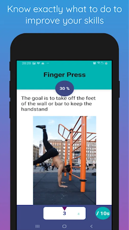 Learn Street Workout and Calisthenics with this app. That will teach you step by step how to master a "muscle up" and a "handstand press" even if you are a beginner. Save your new record at each session and progress. you can find a lot of advice about nutrition, sleep, rest...