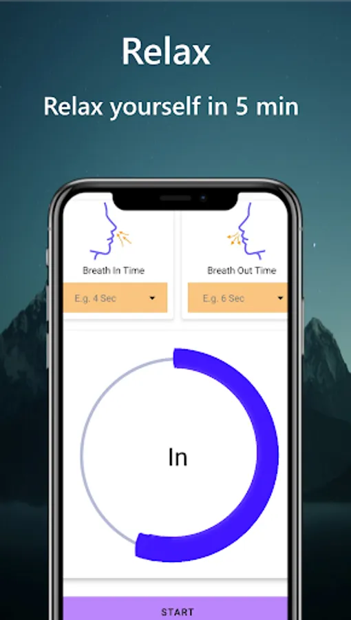 For example, suppose we set the inhale time to 8 sec and exhale time 16 sec. We will continue to breathe in the same pattern for some duration.