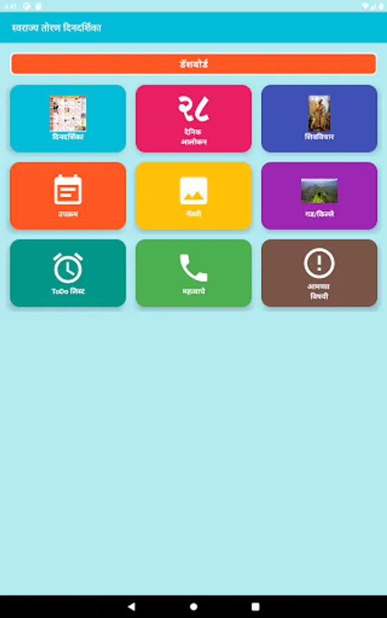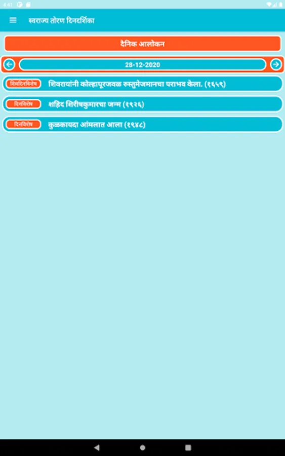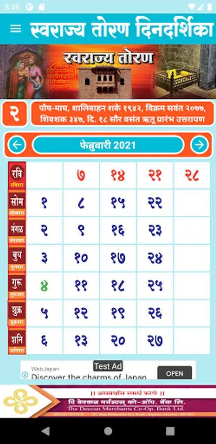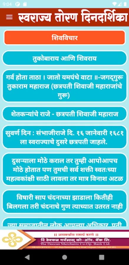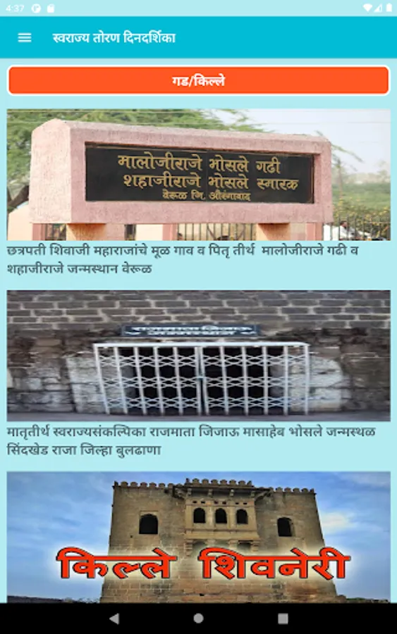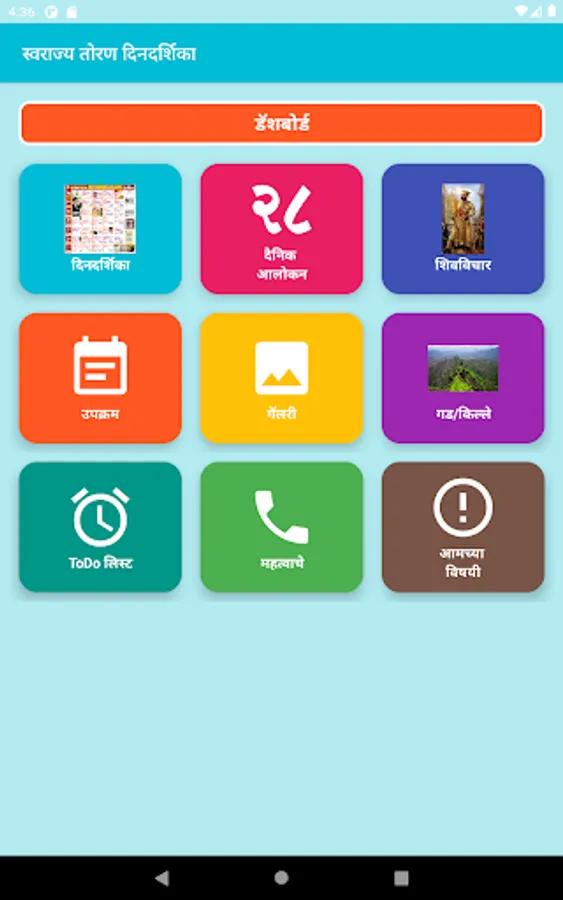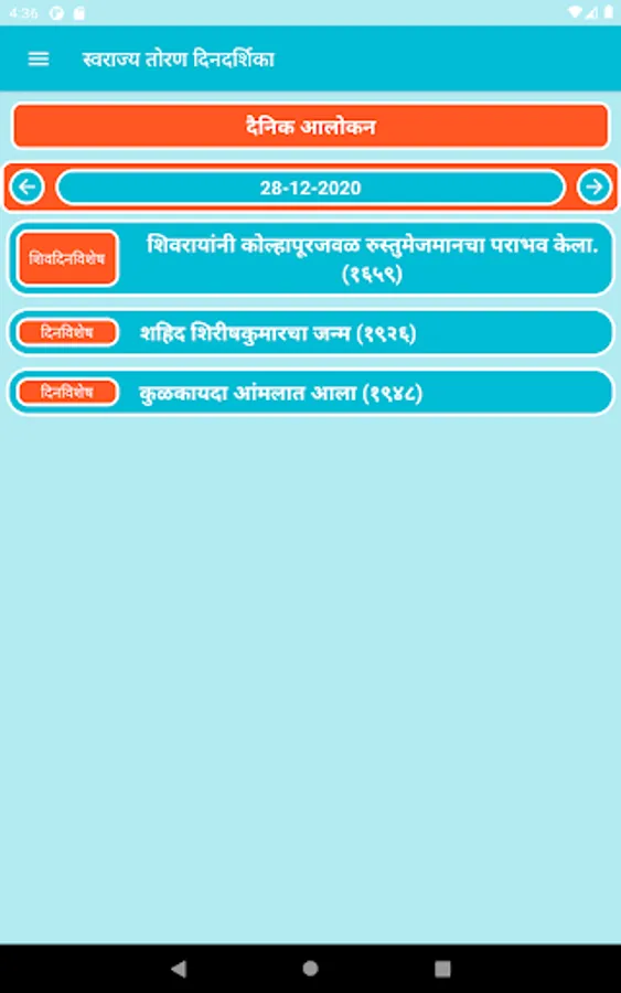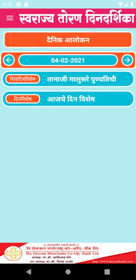 All the important festivals and celebrations are described in detail all the information is available once you click on the date the information is subdivided Antutu two tabs 1 detailing date wise history of Chhatrapati Shivaji Maharaj and other tab having details of importance of that particular date.