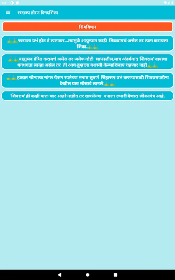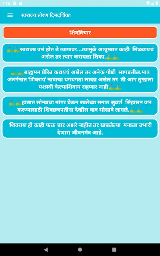 All inspirational quotes in respect of the life of Chhatrapati Shivaji Maharaj for the personality development of youth and children are involved under this tab.