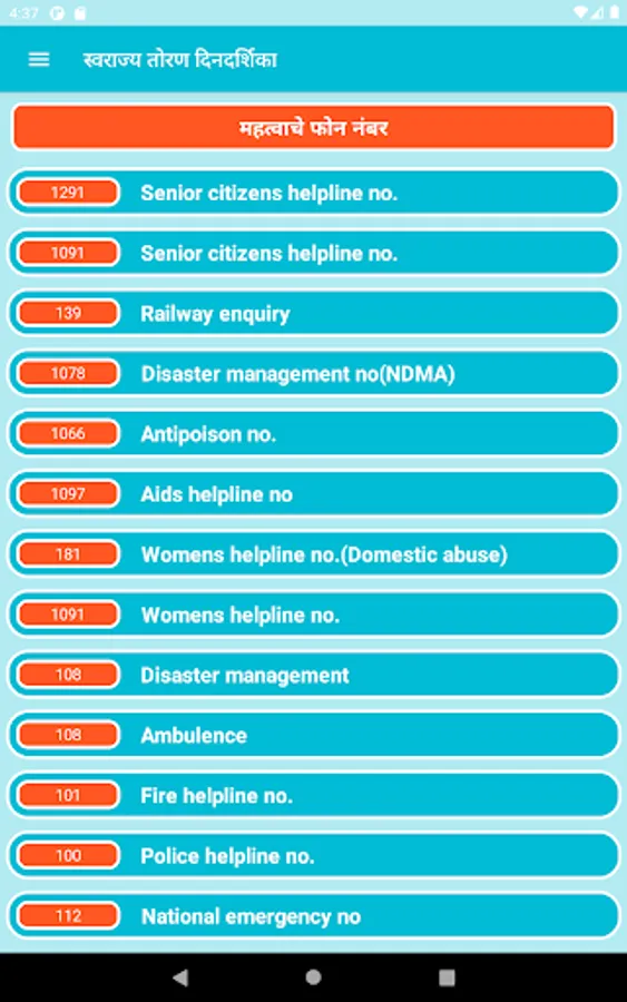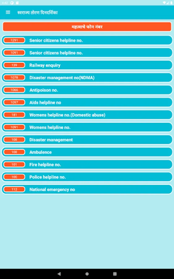all the important phone numbers are available under this tab which can be used by the user in case of emergency.