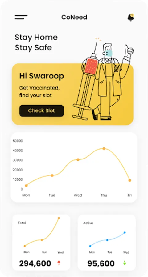 CoNeed is an app where you can check daily vaccine slots based on your area pin code or district, Access covid daily data, Precautions for COVID-19, Download Vaccine certificate and Get Daily Reminders