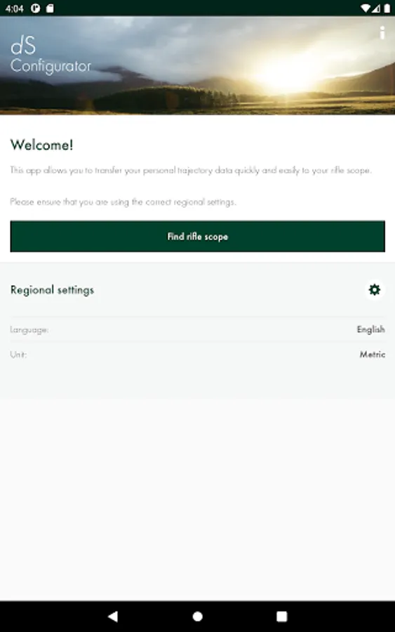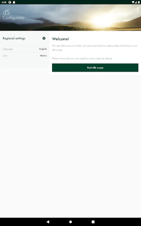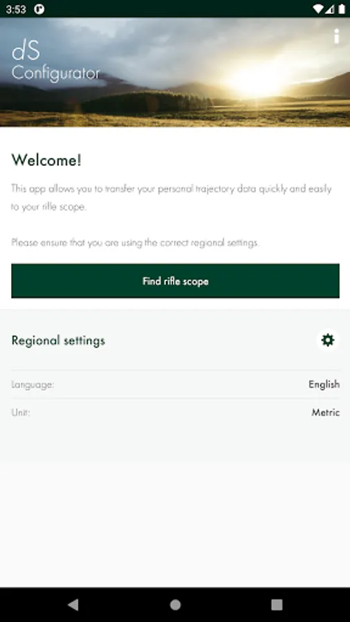 The dS Configurator app helps you to set the dS to your personal firearm/ammunition combination and to customize the display.
