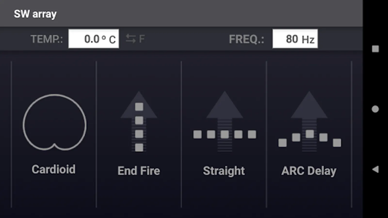 The subwofer (array SW) is a tool to facilitate the calculations of the arrangements. It uses as a reference boxes "omnidirectional" and indicates the data to assist assembly of the arrangements: