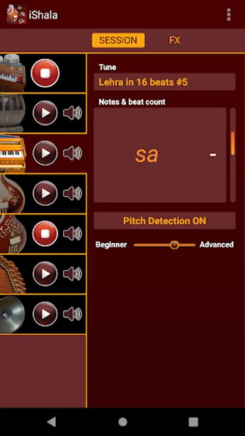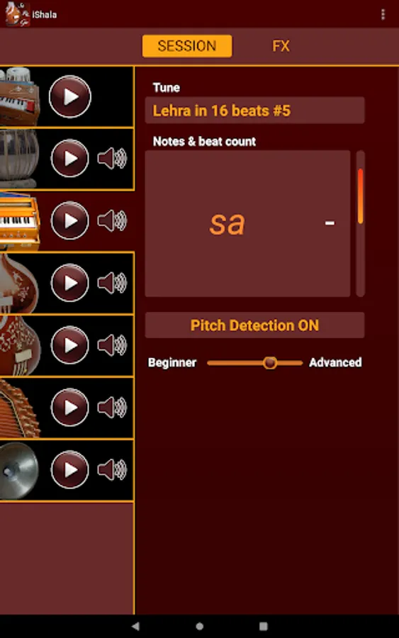 Along with accompaniment, iShala now also corrects your pitch*! Sing/play freely or over a harmonium melody and iShala will highlight any discrepancy from the correct note. This is an incredible tool to improve your pitch accuracy.