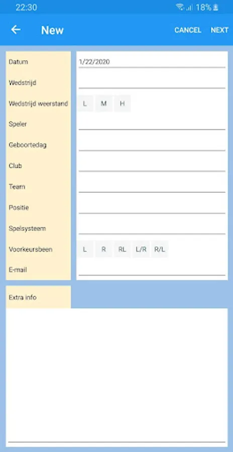 After our first scouting Booklet (A6 size), we created a second one and now there's an App with the same cosmetics. Especially made for the Scouts who need a simple way of working when you are viewing at the sideline. it's very easy to get nice players reports.