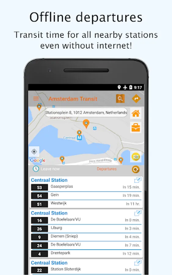 Public transit time for all stops in the city even WITHOUT INTERNET. Check transit plans, search stations, departure lines and navigate to them in offline mode.