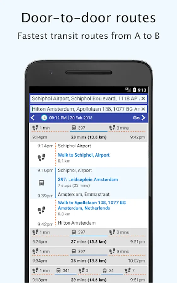 Navigate your city with optimal transit routes, hassle-free using Trains, Metro, Subway, Buses, Trams, Ferries / boats, Underground...