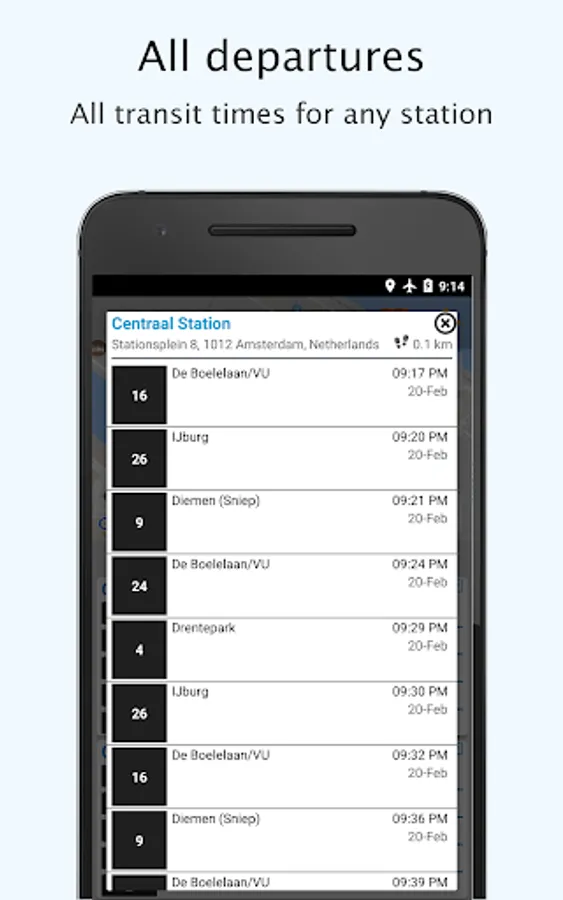 Public Transport Departures timetable for Rail, Tram, Bus, Ferry from Gemeentelijk Vervoerbedrijf (GVB) and many more!