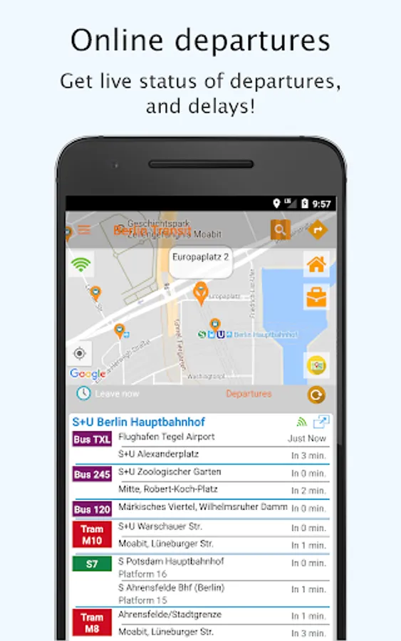 Discover the most comprehensive app for navigating Berlin's public transportation system. Whether you're a local, tourist, or foreigner, Berlin Transit is your all-in-one guide to efficiently and effortlessly traverse the city. This must-have application provides transit routes, online and offline departures timetable, and maps for U-Bahn, S-Bahn, bus, tram, and ferry services from BVG, VBB, DB, and many more reputable transportation providers.