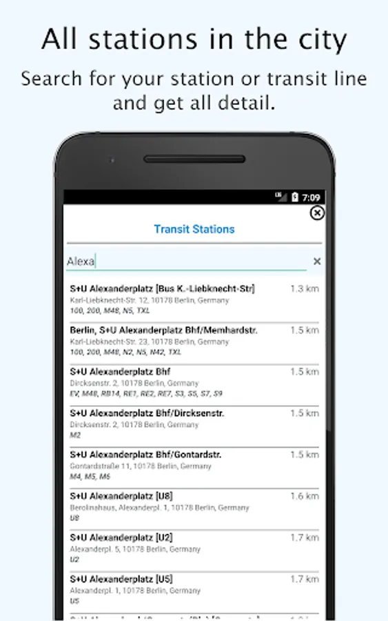 Find any station in Berlin with ease using our searchable list. Discover all the stops, connections, and addresses in the city and the region, available offline for your convenience.