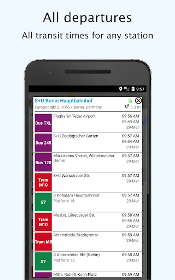 Stay informed about the latest departures at all stations, day or night. With Berlin Transit, you can conveniently view the location of each station on the map and access detailed departure information and more.