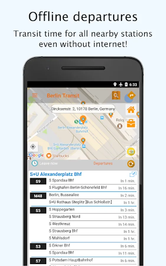 Stay connected even without an internet connection. Berlin Transit offers up-to-date transit plans, station searches, departure lines, and offline navigation. You can access public transit time for all stops in the city, ensuring you never miss a beat.