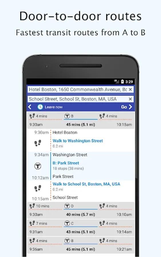 Navigate your city with optimal transit routes, hassle-free using Trains, Metro, Subway, Buses, Trams, Ferries / boats, Underground...