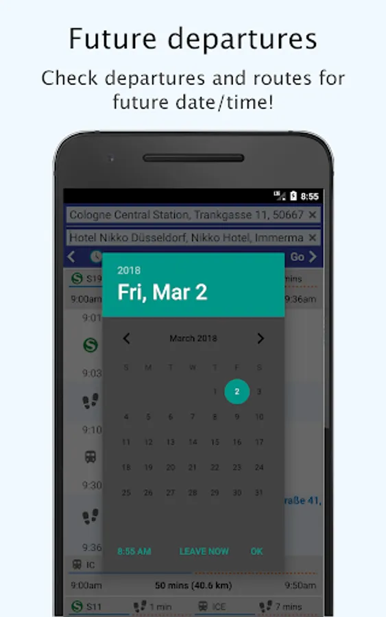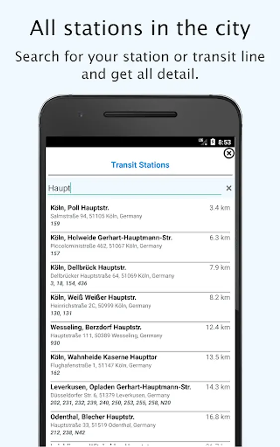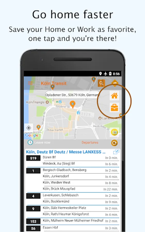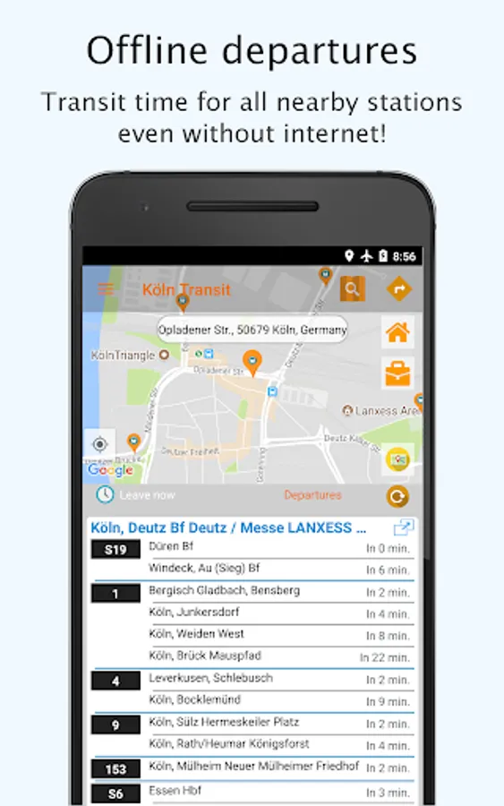 Public Transport Departures timetable for Tram, Bus, Regionalzüge, Stadtbahn, S-Bahn, Fernverkehr from KVB, DB, NRW, VRS and many more!