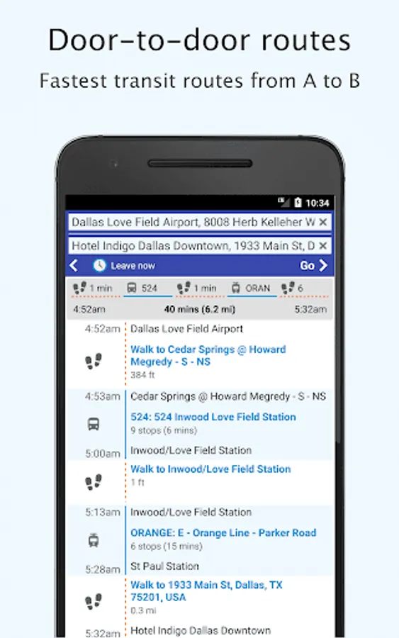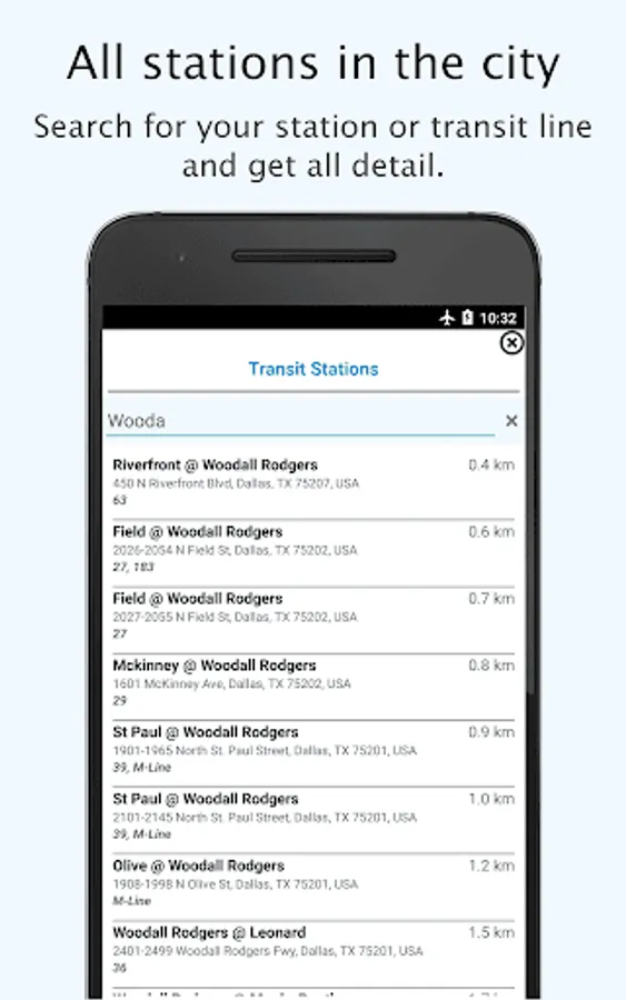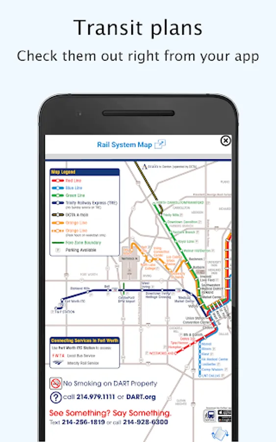 Offline Public Transport timetable and network maps for Light Rail, Streetcar, Express, Bus, Tram, Trolley from Dallas Area Rapid Transit (DART), Trinity Railway Express (TRE) and many more!