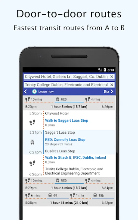 Navigate your city with optimal transit routes, hassle-free using Trains, Metro, Subway, Buses, Trams, Ferries / boats, Underground...